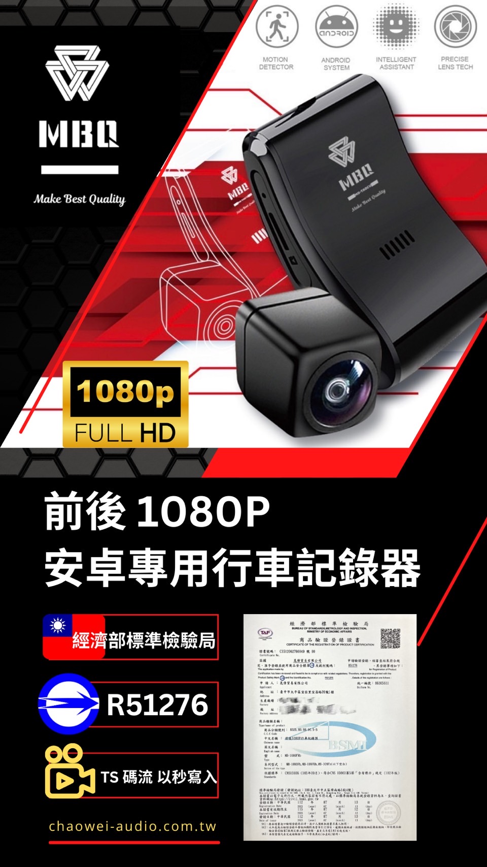< MBQ 安卓主機專用 / 前後行車記錄器 >